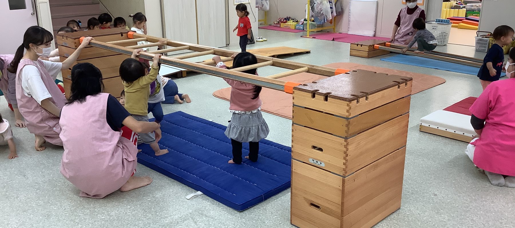 月に1度は開催したいAP(アスレチック パーティー)は乳児クラスの時間です。
