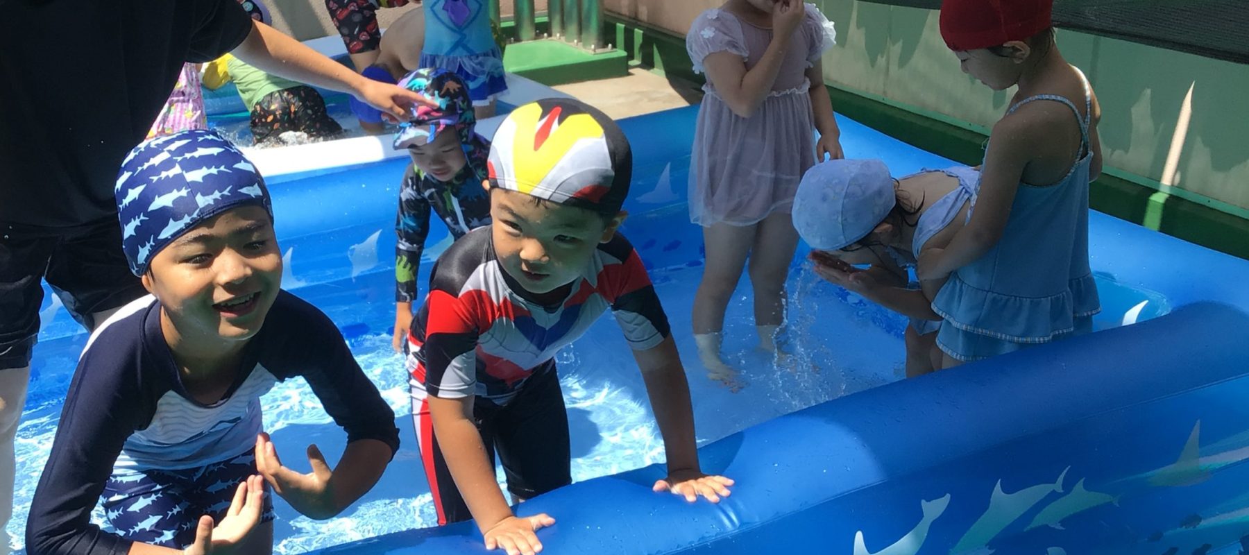 プール開きをして、幼児クラスがプール活動を楽しんでいます。