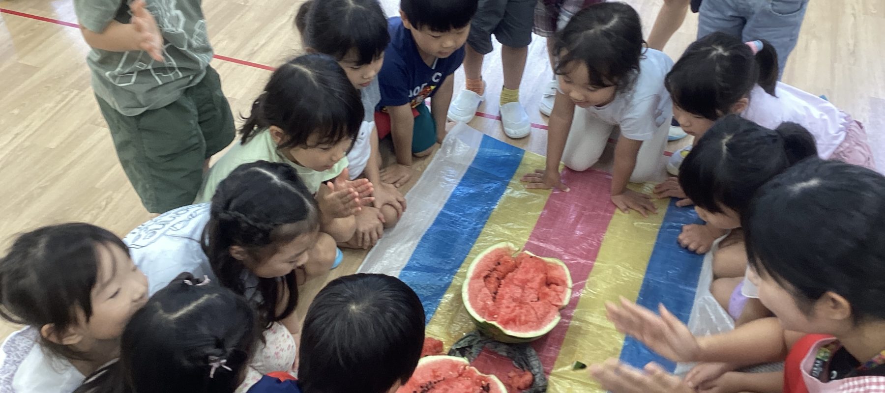 スイカが割れ、真っ赤な中身が見えると大盛り上がりで「美味しそう!」「早く食べたい!」と言っていました。