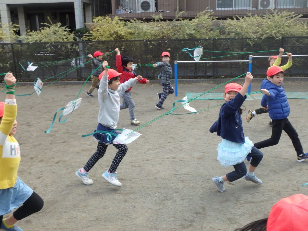 夏祭りを行いました。 可愛らしい浴衣や甚平を着て、準備万端の子どもたち。 0~4歳児のお友だちは、5歳児のお兄さんお姉さんと一緒に手を繋いでお店をまわりました。 ホールには、めろん組が作ったお店屋さんが並び、店員さんになりきって「いらっしゃいませ」と呼びこみをしたり、遊び方を伝えたりと楽しむ姿が見られました。 エントランスでは、盆踊りやたこ焼きゲーム、段ボール玉投げをしました。様々なゲームに大盛り上がりで、賑やかな声が園内に広がりました。