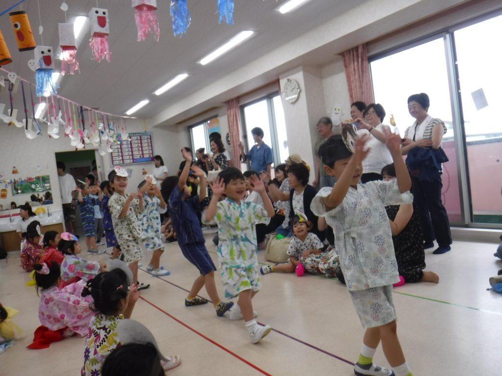 今日は、夏祭りがありました!!今年のテーマは「おばけ」です。保育園がおばけの世界に大変身しました!お気に入りのお面を作って、サーキットで体を動かし、勇気を振り絞っておばけ屋敷に挑戦し、キャラクター探しではたくさんのキャラクターをみつけ、輪投げはみんなが輪投げ名人になりました!!各クラスのダンスもそれぞれのおばけダンスを楽しく上手に踊ってくれました!夏の思い出がまた一つ増えたようです!
