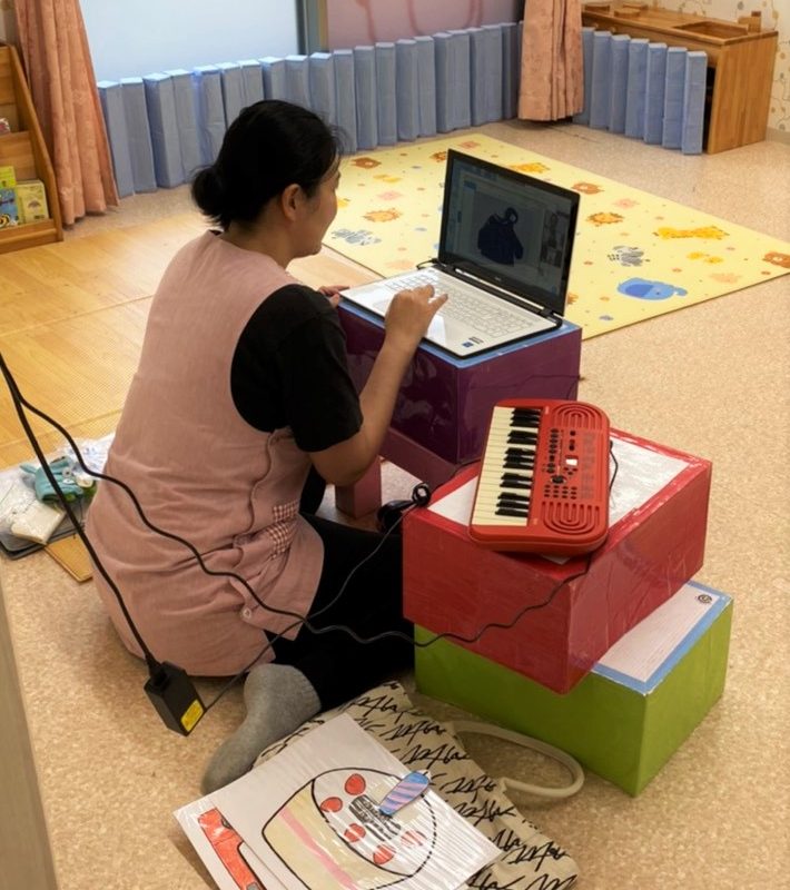 今日は、地域の8月生まれのお子さんのお誕生日会と園見学をオンラインで実施しました‼『Zoom』というアプリを使って、お誕生日の歌を歌ったりシアターをしたり♪ また様々な写真を準備し、園紹介もしています。【ルンルン通信】や園のホームページ【お知らせ】をご覧ください。子育ての相談なども楽しくお話しましょう。皆さんのご参加楽しみにお待ちしております(^^♪  ※主任頑張っています✨