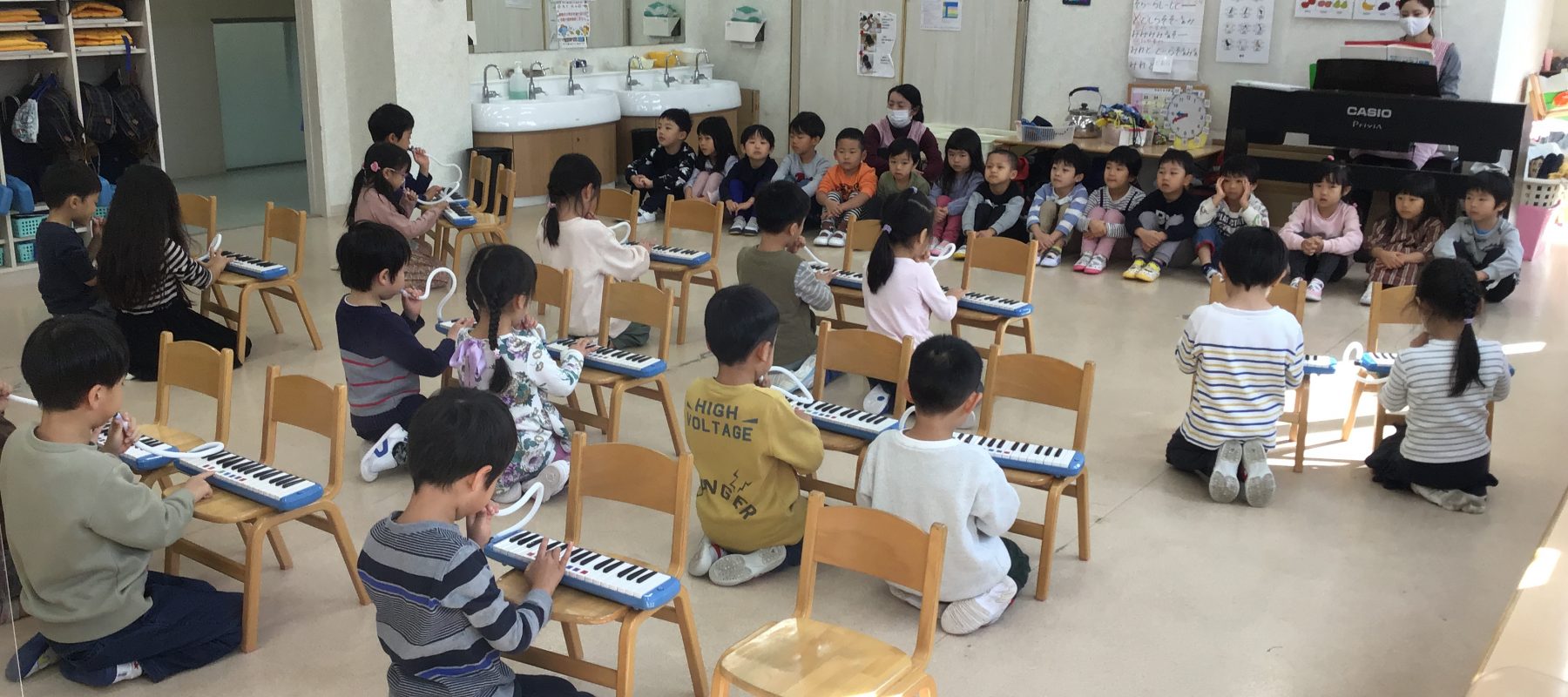 今回はぶどう組のダンスとめろん組のピアニカをお互いに見せあいっこしました。お客さんの前での発表は緊張していた子ども達ですが、表現活動の楽しさを味わっています!!