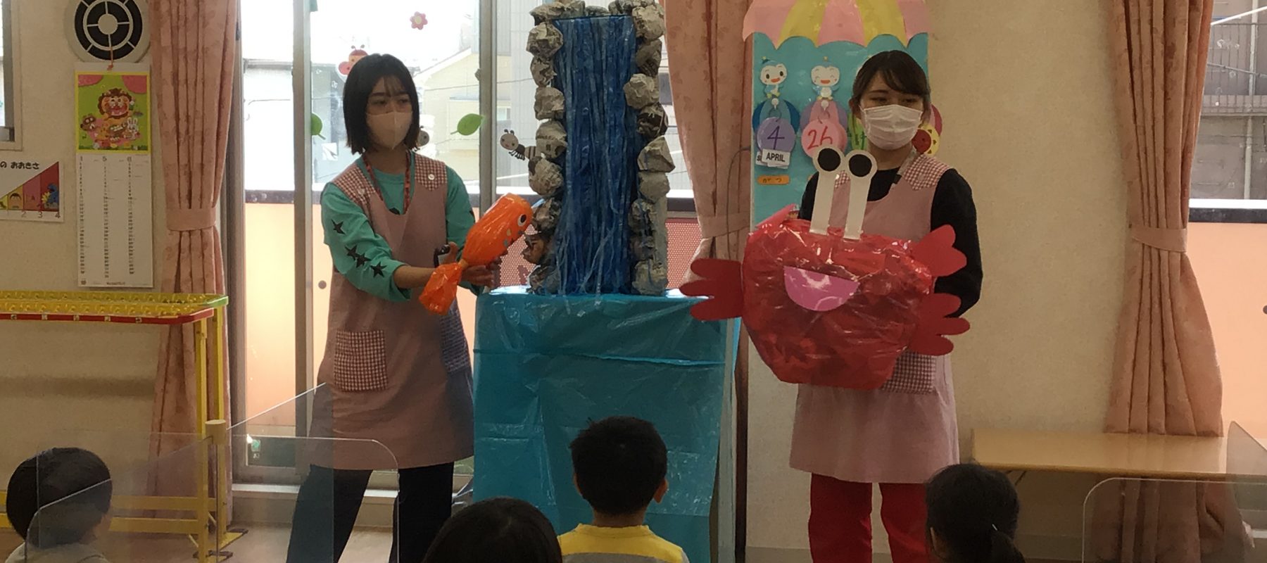 「こいのぼり会」では滝のこいのぼりのシアターを見ました。